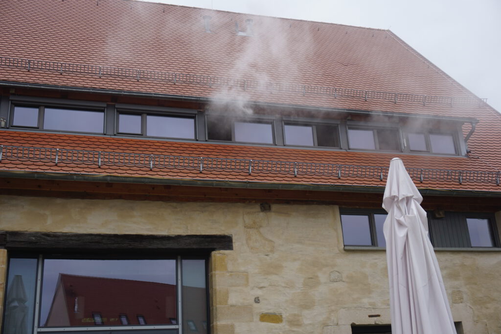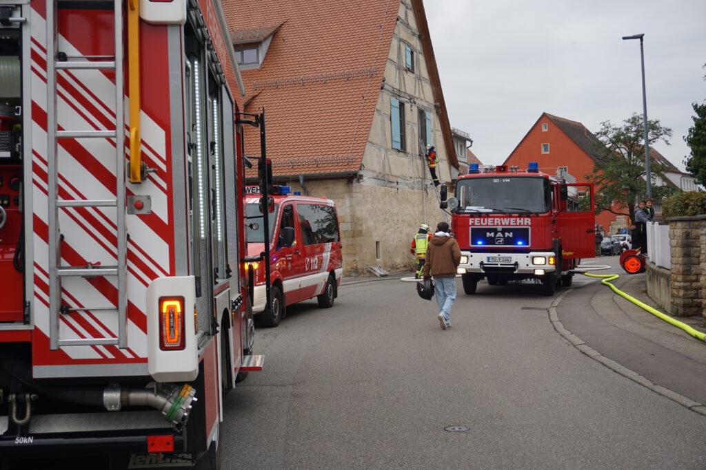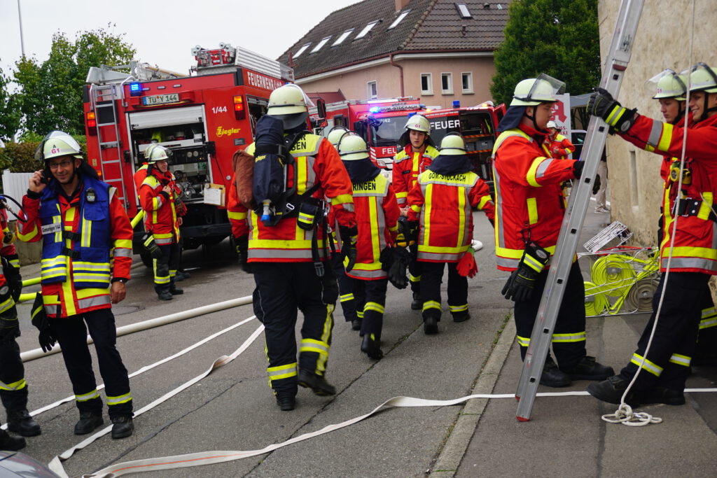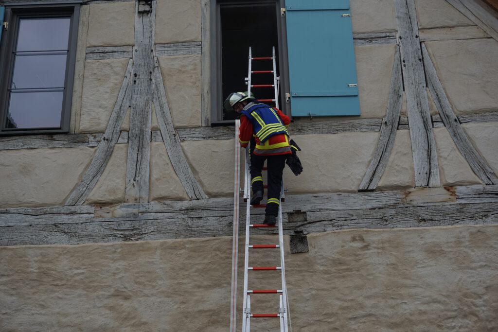 Der Schwerpunkt der Übung lag eindeutig auf der Menschenrettung sowie der schnellen Brandbekämpfung unter erschwerten Bedingungen. Die Feuerwehrkameradinnen und -kameraden mussten sich durch verrauchte Räume kämpfen, eingeschlossene Personen lokalisieren und unter Atemschutz retten. Um schneller zu den eingeschlossenen Mitarbeitern zu gelangen, gingen zwei Trupps über eine Leiter direkt zur Menschenrettung vor und verschafften sich so einen zweiten Zugang zum Gebäude. Dabei galt es, trotz eingeschränkter Sicht und der komplexen Raumstruktur den Überblick zu bewahren und systematisch vorzugehen.