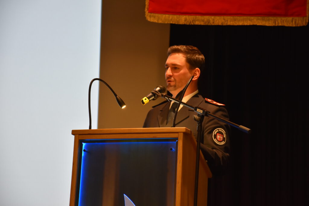 Bürgermeister Steffen Heß stellte in seiner Ansprache die große Bedeutung der Feuerwehr für die Gemeinde heraus. Er betonte, dass die Feuerwehr keine Selbstverständlichkeit sei und verwies auf die Einsätze in der Silvesternacht, bei denen die Wehr gleich drei Mal ausrückte, als eindrucksvolles Zeichen der Einsatzbereitschaft.