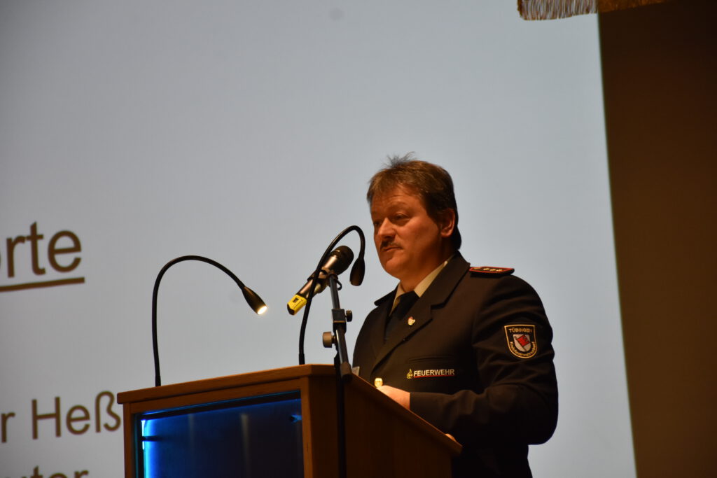 Der Vorsitzende des Kreisfeuerwehrverbands, Ralf Sauter, berichtete aus dem vergangenen Verbandsjahr. Der Landkreis Tübingen gewann mit seinem Konzept eines „Katastrophenschutz-Tags“ den Publikumspreis beim Wettbewerb „Helfende Hand“. Zudem hat das Brandschutzerziehungskonzept des Landkreises mittlerweile weit über die Kreisgrenzen hinaus Beachtung gefunden – ganze Regierungsbezirke möchten das System übernehmen. Für den Spielmannszug wird ein neuer Leiter gesucht. Als kommende Herausforderungen nannte Sauter die Ablösung der Feuerwehrverwaltungssoftware sowie die Einführung einer neuen Lagesoftware.